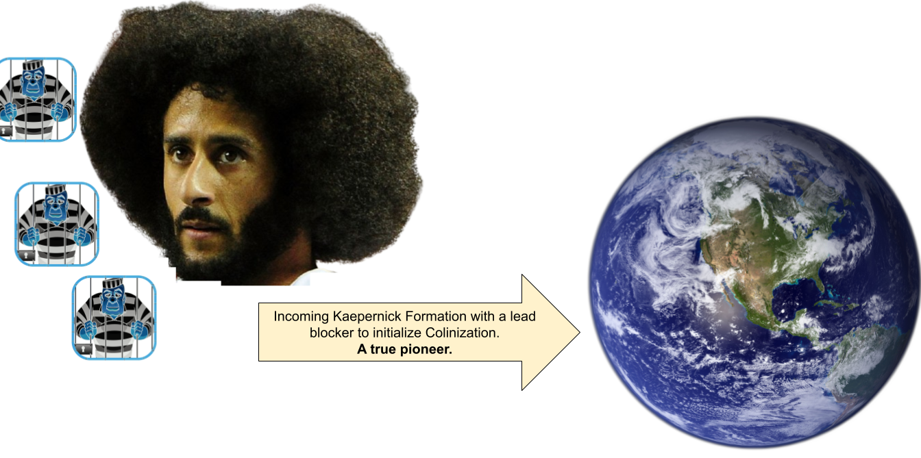 Kaepernick sacrificing all of his personal glory when at his peak to clear the way for others - with no guarantee of success. Well how could you leave the Copernican System (or visit) without some shielding. Well heck, a Kaepernick could get it done if used in a formation. Anyone that values their people's quality of life at the expense of their own is the beginning of a miracle. In the future the council will declare this individual either as a saint or false prophit based on the observational results.